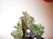 Ok, here's the harvest pics. We'll call this plant #1. Here's a very quick overview of how I trim, I would have taken more pics but my cam was running out of batteries. Luckily they lasted long enough to get to the wet weigh in