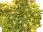 It won't be long now 2 weeks, maybe a little longer for some. I was forced to sample, since I can't go a day w/out smoking and haven't been able to get any for a couple days. I only take the smallest little one hitter sized nugs from the bottom of the canopy, that won't really produce anyhow. It's even frosty as fuck down in that mass, what a strain! Each pheno smells different but all amazing nonetheless, and I can't really decide how to describe it. Sometimes I get a strong whiff of fruitiness, then a hint of berry, and even some more woody/musky scents too. Very complex, but even the quick dried one hitters I smoked tasted SO GOOD and so smooth compared to my last run, not even close. I'm fairly fucking baked and it's still got a long way to go. I'm so excited now that I know it already packs a punch and still has up to 1/3 of the flowering period remaining. Thank you all for the compliments, really. It makes me feel a lot more mellow and stop analyzing everything so much, I'm OCD like that. I think the next update in 4-5 days is going to be a good one.
