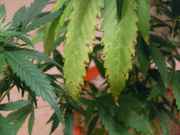 No problem. I'm unsure as to whether or not I'm overfeeding them. 2-3 large fans on the middle plant in the first pic are yellowing, the plants in the last set of pics are a little yellow too. I doubt it's underfeeding because I'm hitting them hard. I took mag's feeding schedule and slightly modified it because I felt it was too strong. At this point I'm wondering if even my dosages are too strong for my plants. It's quite possible I've caused a lockout, so to be sure the next watering (thur night) will be plain with a tbsp of clearex. I might give them an additional plain watering, or at least a watering with a light dose of food (1/4 tsp FNG 1/4 tsp Kool Bloom, touch of Kool Bloom dry).