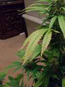 First two pics are two separate leaves, these are probably the most heavily damaged. I see some others that look to be heading in that direction as well, but I think I'll be able to save them somewhat. Figured while I was snapping some damage pics I'd take a couple more of the girls and get some close up bud shots.