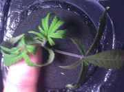 The lil' girls had to die... the apartments we're at are doing a "yearly routine testing of the fire alarms" today, and we felt it would be prudent to simply put everything in storage until afterwards. The lil' things weren't doing too hot anyways, so we're going to start again with some already established clones, I think... I need a mother I can keep pulling cuttings from, ya know? Lol.