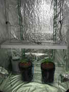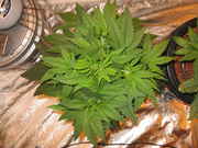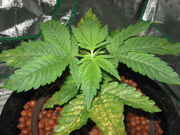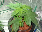 The Doctor looks fucking beautiful!!! It's getting slightly less nutrients than the TNT Kush. That plant has been a lot more sensitive to the nutrients I'm giving it. The Doctor on the other hand looks almost perfect, in my opinion. No nutrient burn or anything. The stem is a lot thicker than on the Kush. If I can get my hands on an inline fan, I plan on putting up my 400 watt HPS and dropping the light to 12/12. I'm not trying to get too big of plants. I'm sure I'll end up with a nice harvest with the size the plants will be next week when I change the light cycle.
