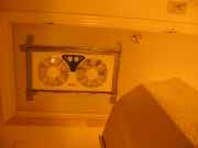 The fan in the door inside and out. I had to use mirror for outside pic beasue the closet is so close to the sinks.